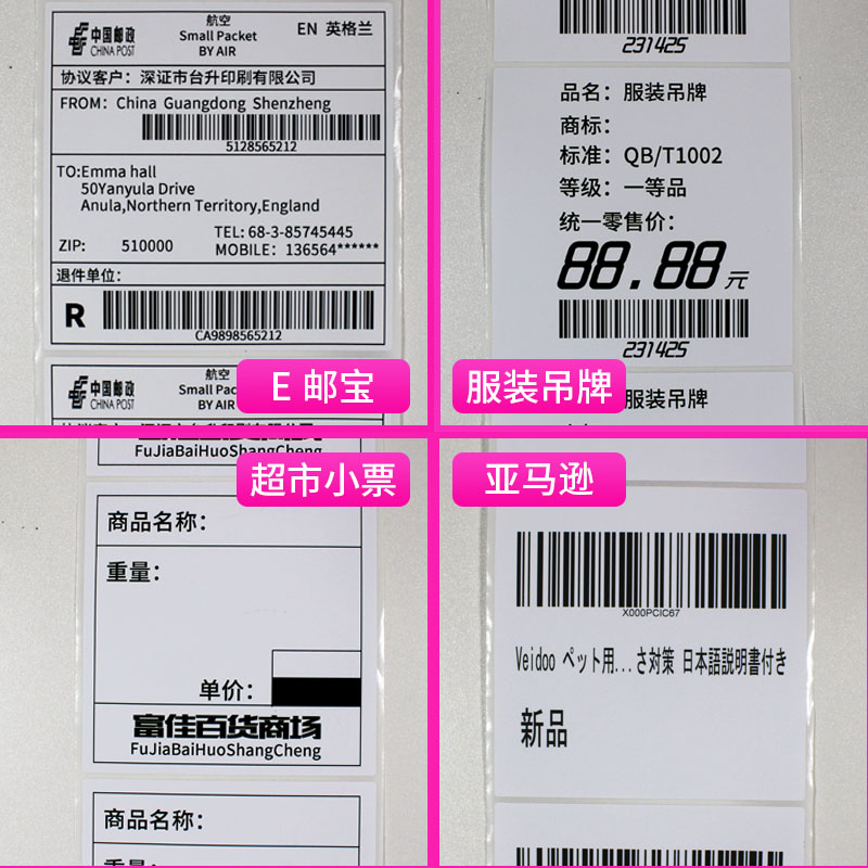 Label copy paper Three anti-thermal paper 40 50 70 80 90 100times 100 Self-adhesive e post Treasure Amazon Stickers Thermal printer Stickers