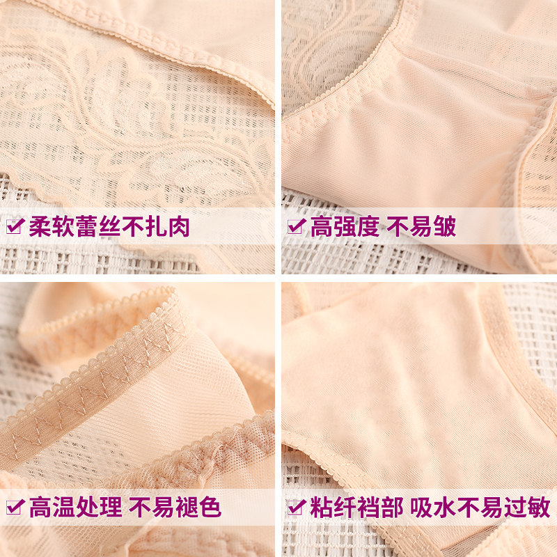 Sexy underwear women's lace low waist hot ice silk mesh transparent hollow girl seamless summer briefs head