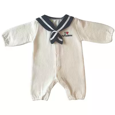 Newborn cotton one-piece baby romper Baby padded warm and breathable climbing clothes spring and autumn and summer navy pajamas