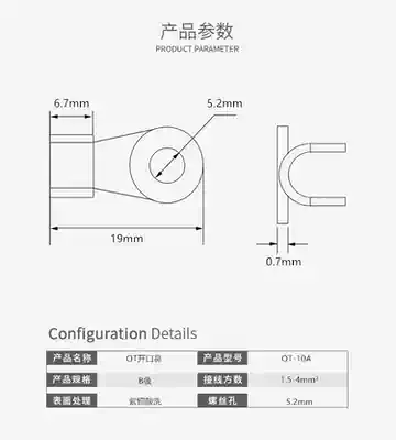 OT10A Copper open nose 1 5-4 square screw hole 5mm Copper terminal block Terminal block Copper wire ear 100