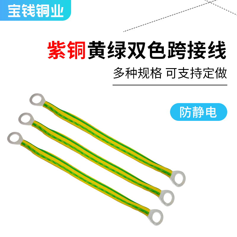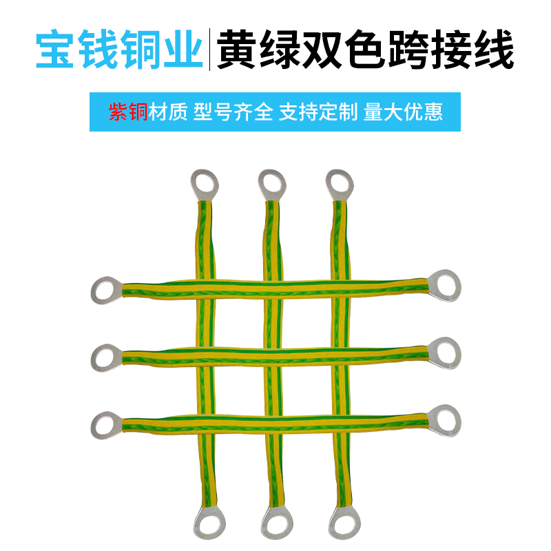 Copper woven wire yellow - green flange electrostatic cross - wiring 6 square photovoltaic connection international grounding bridge