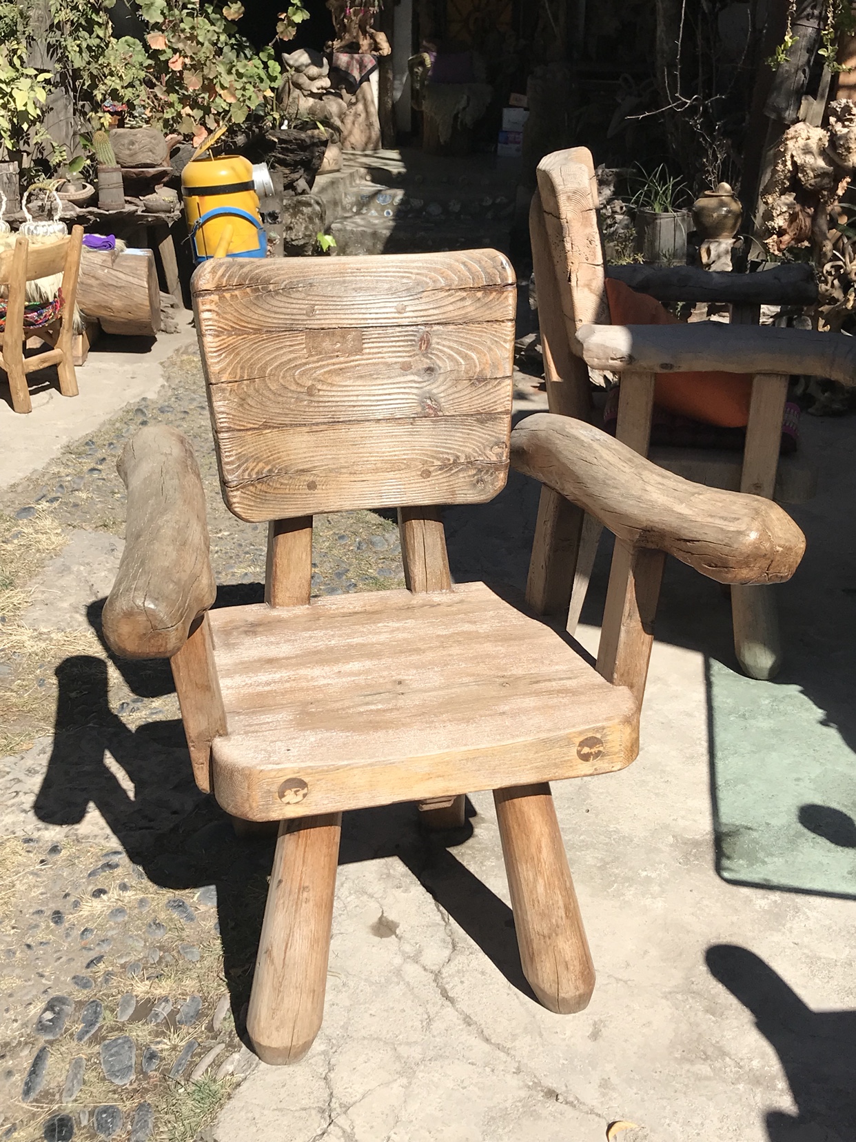 Yunnan Lijiang Pangu Wagang Village Old Wood Armchair Log Homestay Inn Original Ecological Furniture
