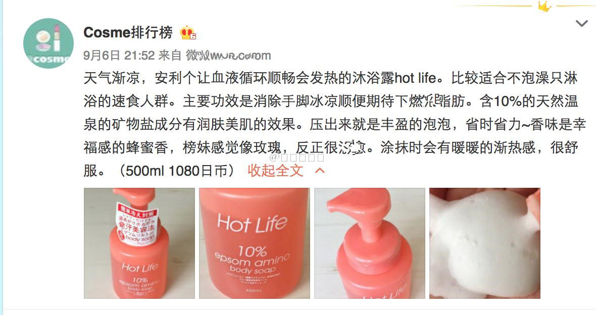 Japan 17 new Hot Life sweating beauty autumn and winter special heating and warm mineral shower gel 500ml