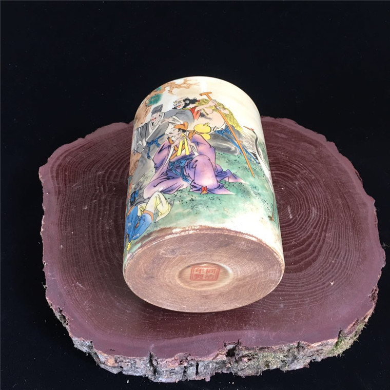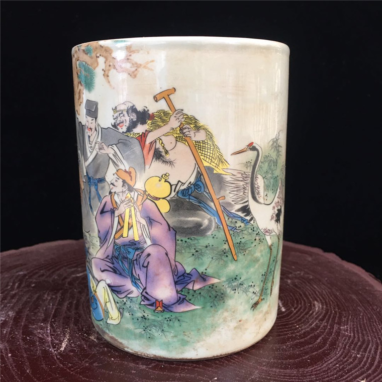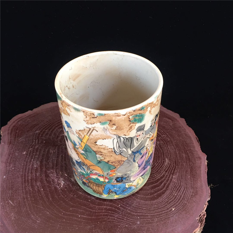 Qing Tongzhi Pastel Eight Immortals Pen Holder Antique Porcelain Home Furnishings Antique Collection Study Furnishings