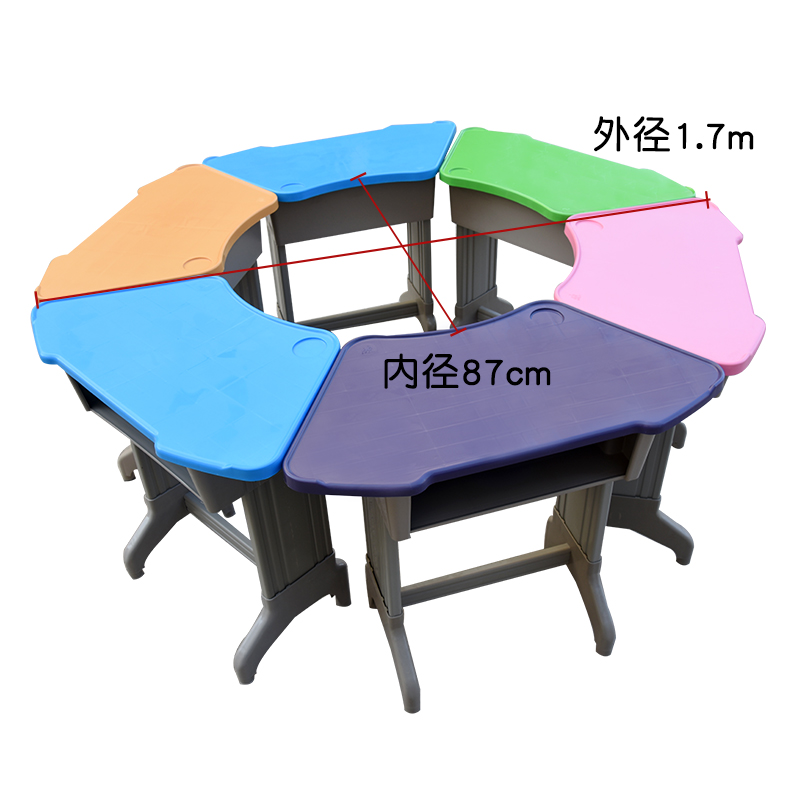 Primary and secondary school students trapezoidal desks and chairs training table School hexagonal table hexagon combination table tutoring color splicing table