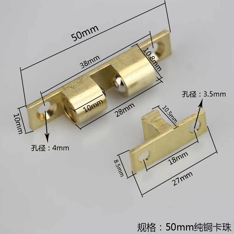 Pure copper buckle whole cabinet wardrobe door suction bead card type door touch buckle card bead medium 50mm