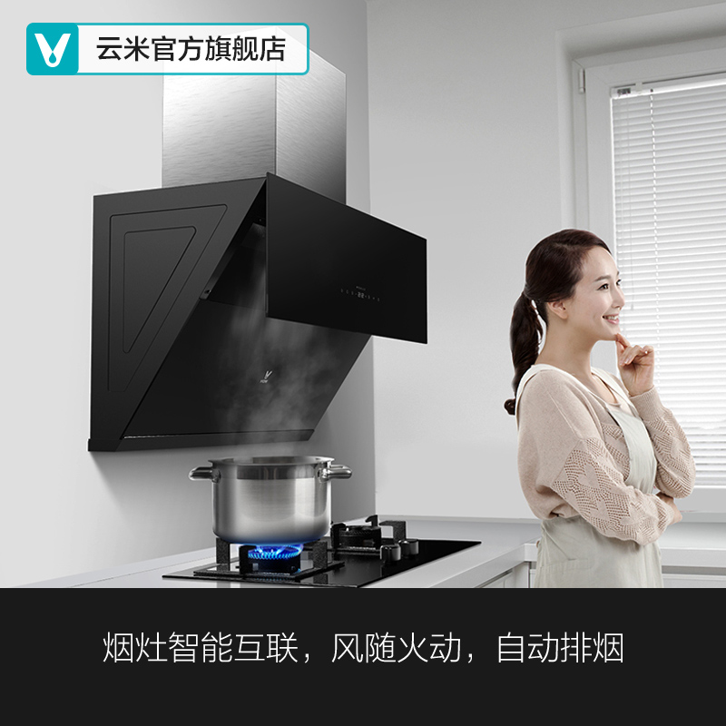 Yun Mi side suction range hood gas stove package smoke machine stove set smart APP smoke stove official flagship store