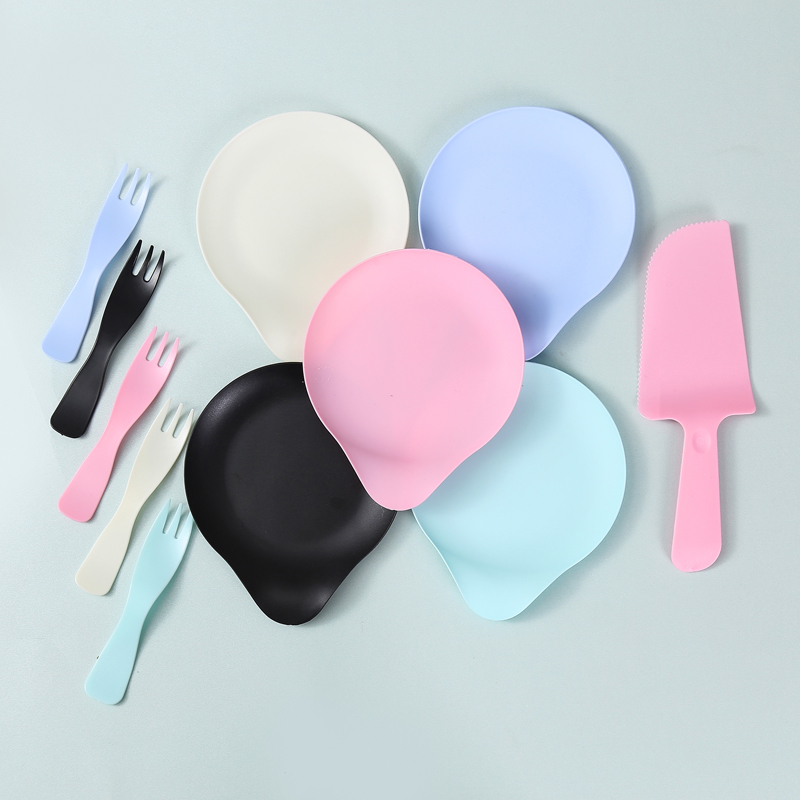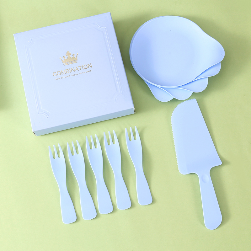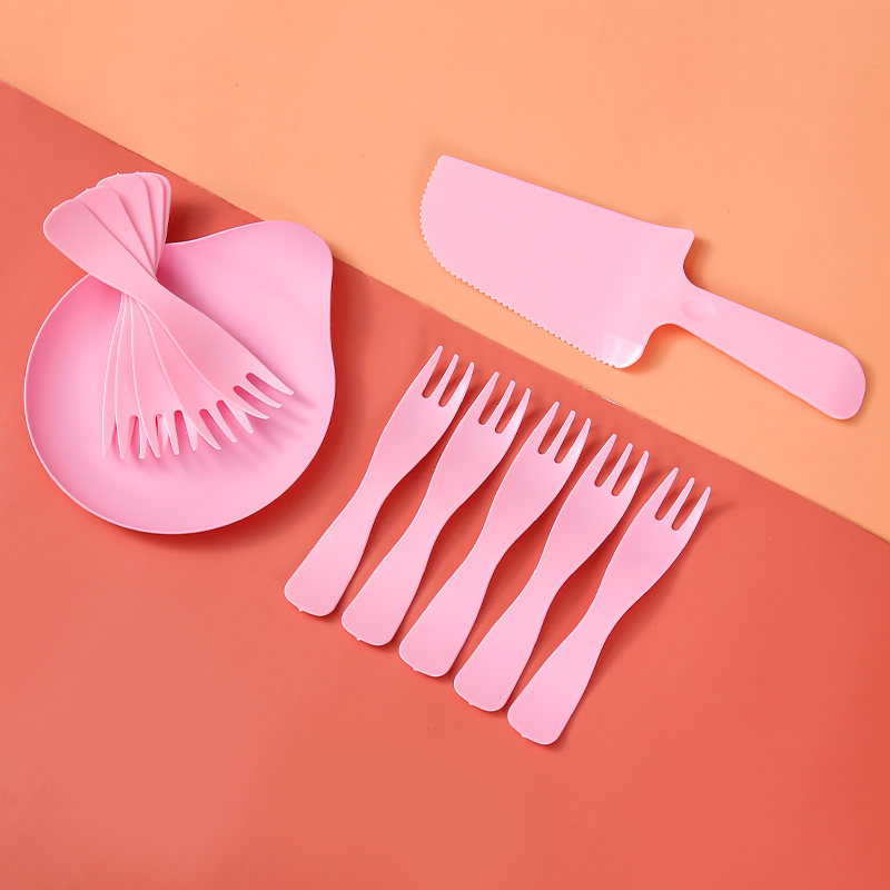Plastic cake plate fork Disposable birthday cake knife and fork plate fork combination High-grade plate knife and fork set