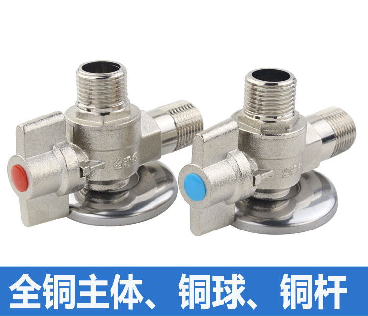 Full copper 4-point large flow ball valve 15mm full diameter straight corner ball core triangle ball valve Special switch for water heater