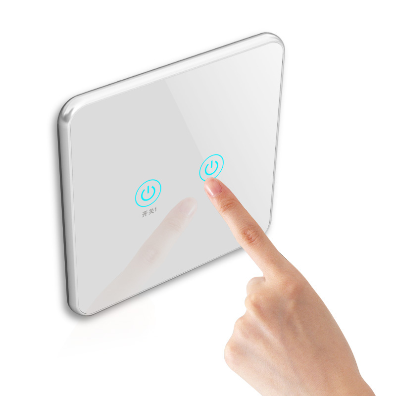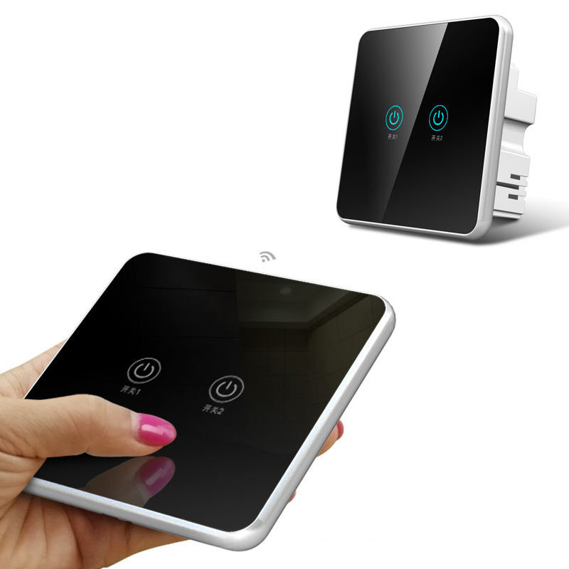 Microcontrol remote switch, free paste, non-wiring, wireless double-cut Multi-control smart touch screen, two open 86 household panel