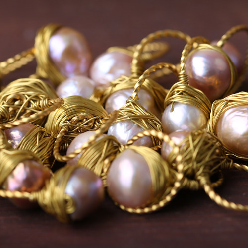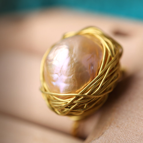 Plated Real Gold Baroque Edison Pearl Handmade Round Silk Ring Original Accessories (0721F)