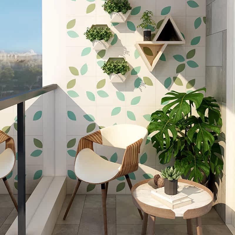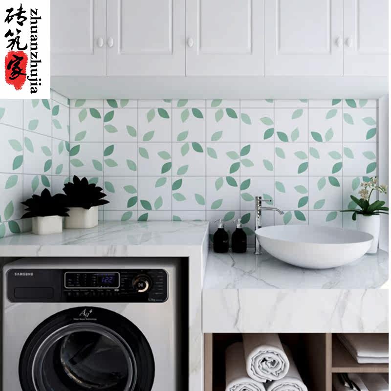 Minimalist modern green leaves small flower brick 200x200 balcony wall 300 Makeup Room Kitchen Ground Non-slip Tiles
