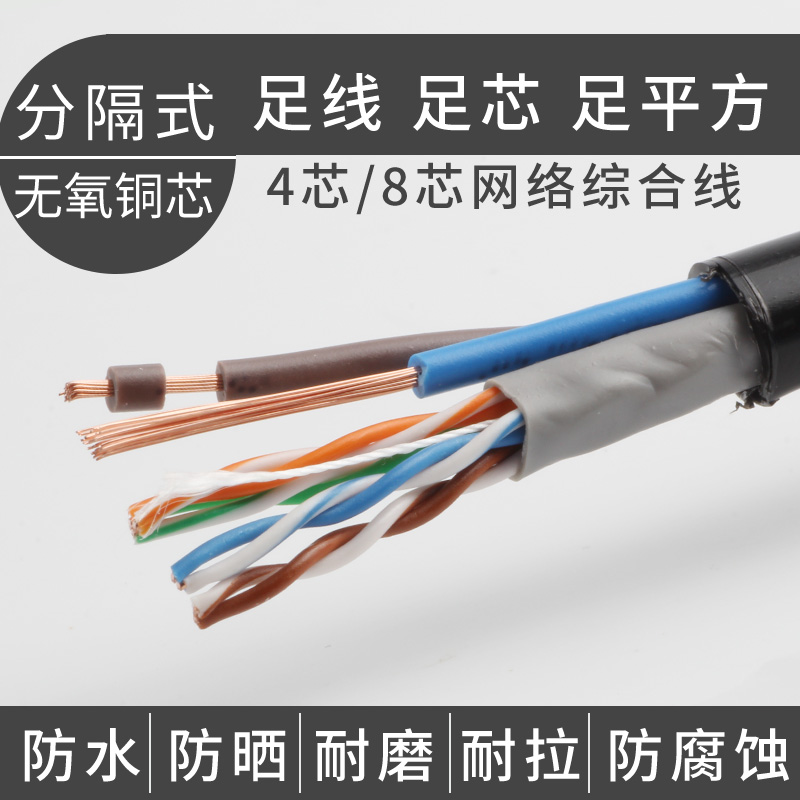 Oxygen-free copper outdoor network integrated line Pure copper 4-core 8-core network cable with power monitoring integrated line 300 meters