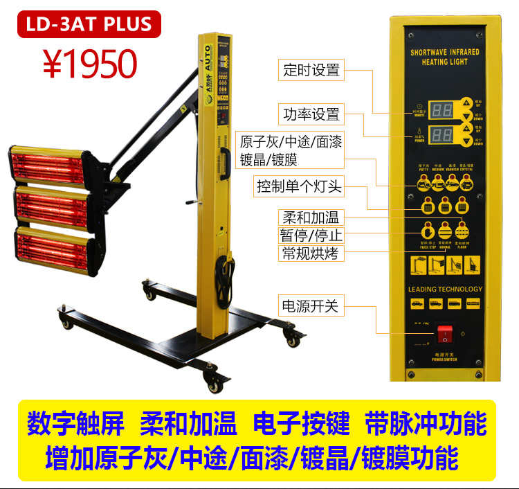 Car short wave infrared paint lamp Spray paint paint body sheet metal baking lamp equipment three rows of tubes mobile
