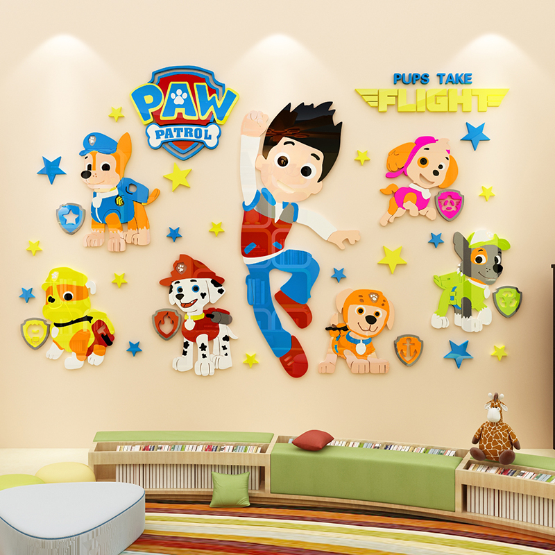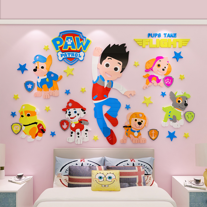 Barking Team 3D three-dimensional wall sticker Children's room Bedroom bed decoration Cartoon creative decoration Acrylic