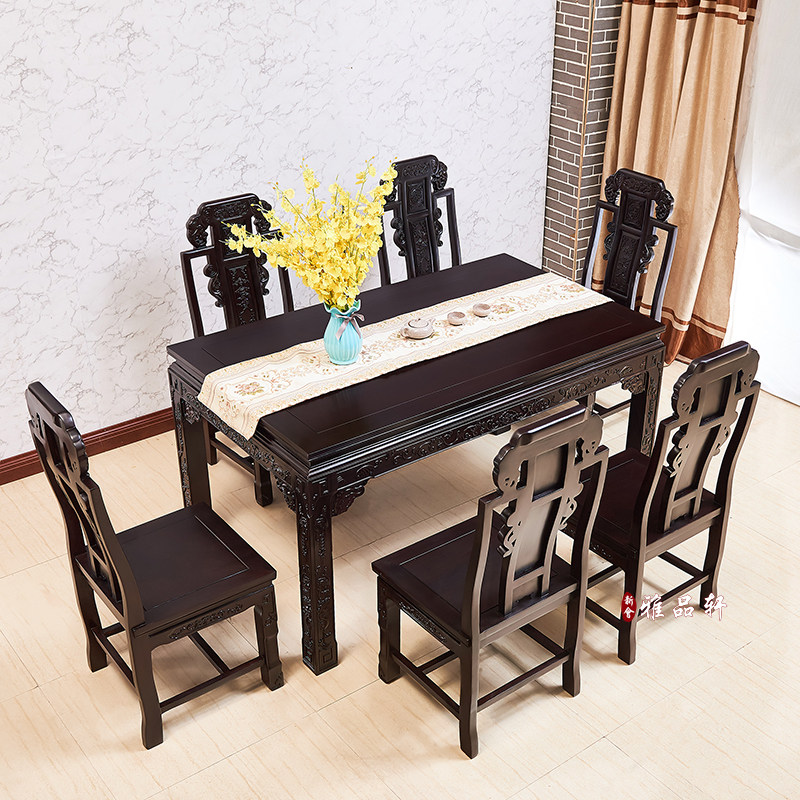 Red Wood Table Africa Black Sandalwood Elephant Head Ruyi Dining Table And Chairs Group Full-Style Solid Wood Rectangular Carved Dining Table