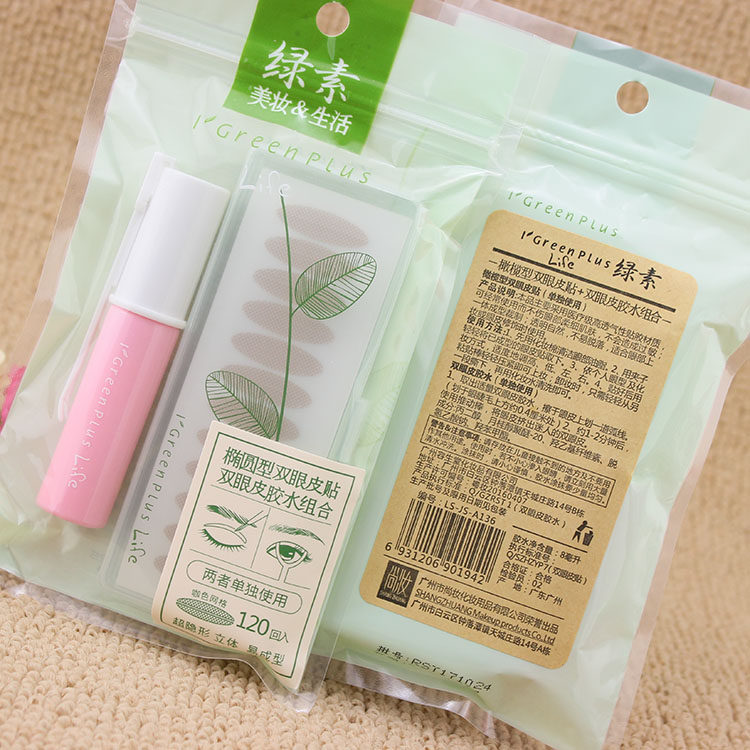 Green vegan double eye leather patch invisible natural ellipsoidal olive type not reflective meat color meme patch with glue