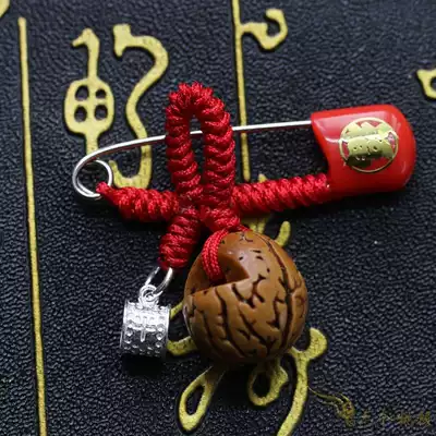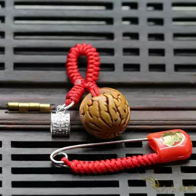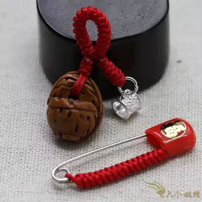 Pure handmade natural peach kernel old to hairy peach kernel basket foot silver safe thimble hoop baby child safety pin pendant