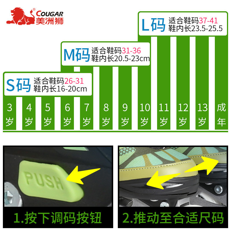 Cougar roller skates children's adjustable beginners full suit men's large, medium and small children's professional roller skating dry women and men