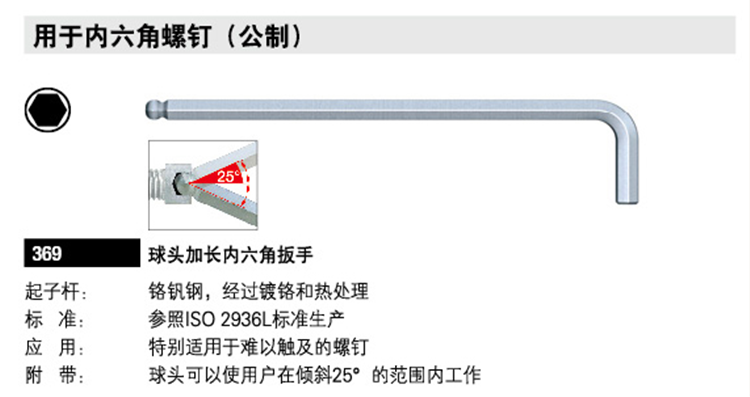 German Wiha Weihan 369 01402 L type ball head lengthened inner hexagonal plate handmade 6mm hexagonal spoon single
