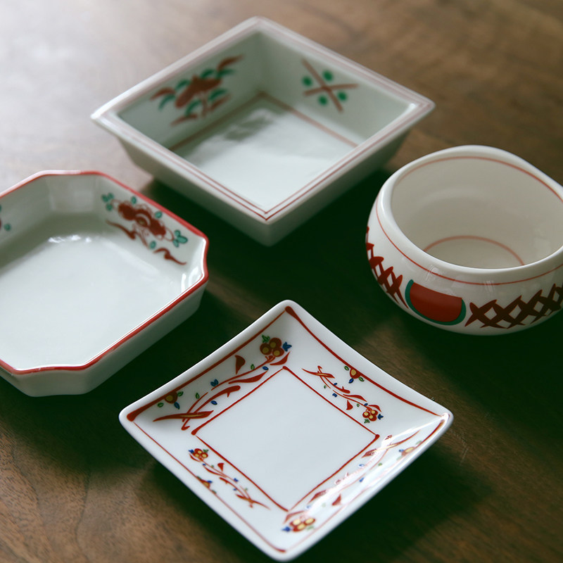 Glutinous rice porcelain) Chinese red gold small dish Ceramic small bowl Square dish Japanese tableware seasoning dish