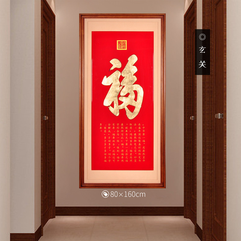 Hundreds Fu Fu Characters Great Size Xuanguan Entrance Painting Solid Wood Chinese Style Corridor Vertical Version Decoration Painting Red Wood Imperial Fu