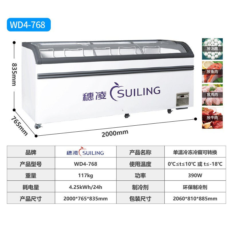 Sui Ling WD4-768 horizontal freezer supermarket combination island cabinet transparent commercial ice cream cabinet freezer freezer freezer