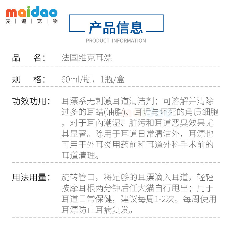 Vicker Pets Wash Ear Salt 60ml Ear Drop Ear Drop Cat Dog Pulli Skin Spirit