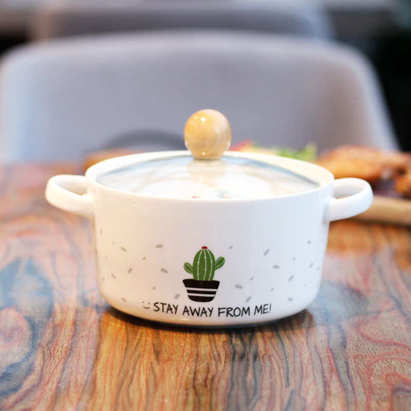 Love Beauty & Whirlpool Creative Personality Cactus Pattern Hand-painted Style Student Bubble Noodles Bowl double-ear anti-burn ceramic bowl