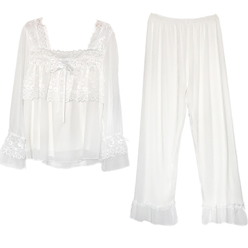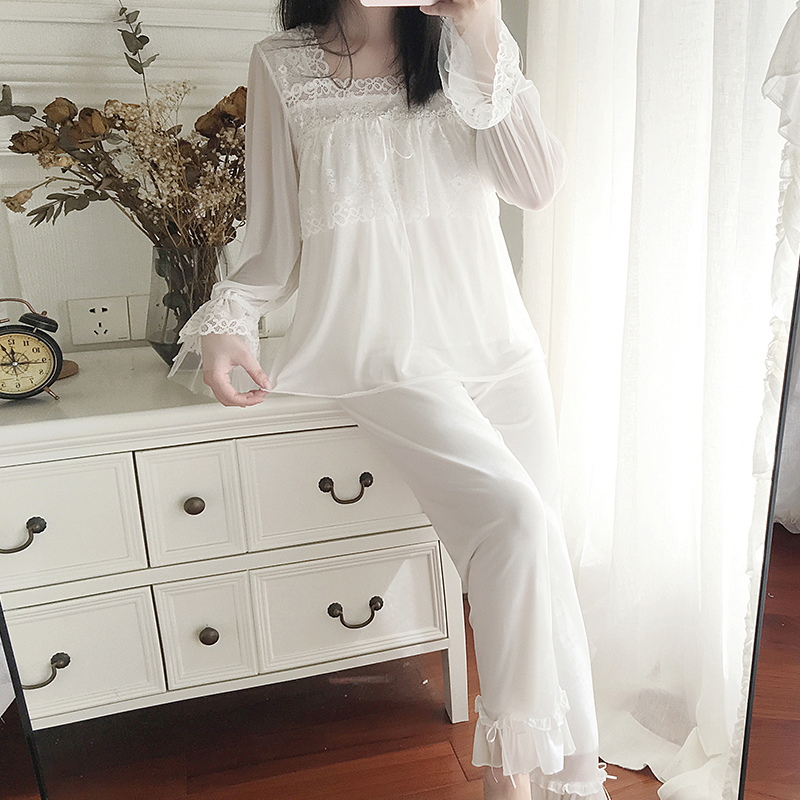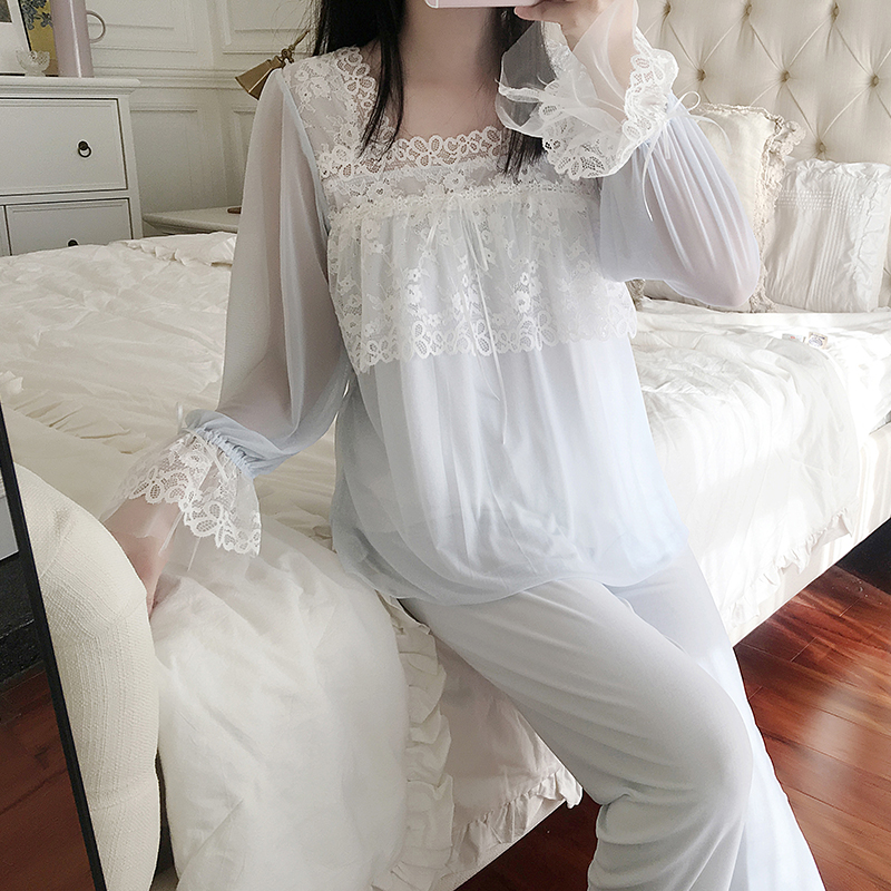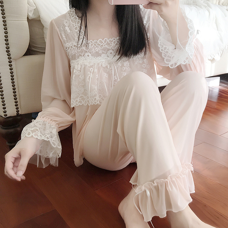 Palace Korean version pyjamas women's spring and autumn style Sexy White Princess Wind Sweet Beauty Lace Summer Home Suit Suit