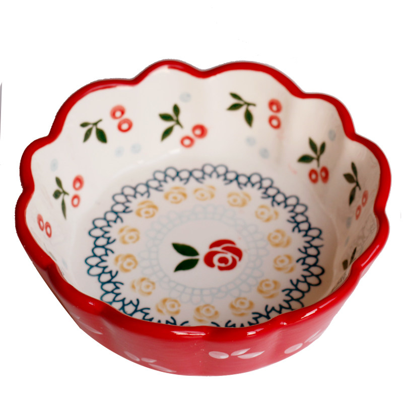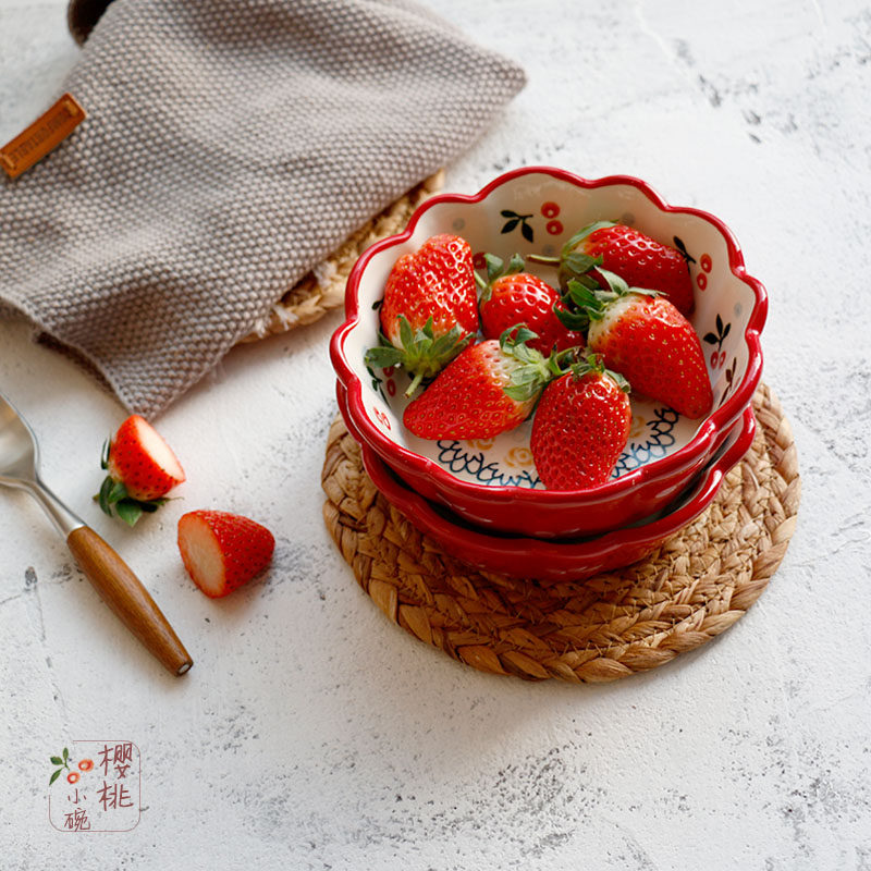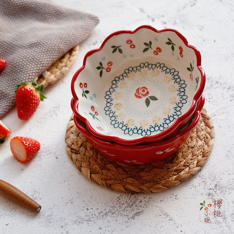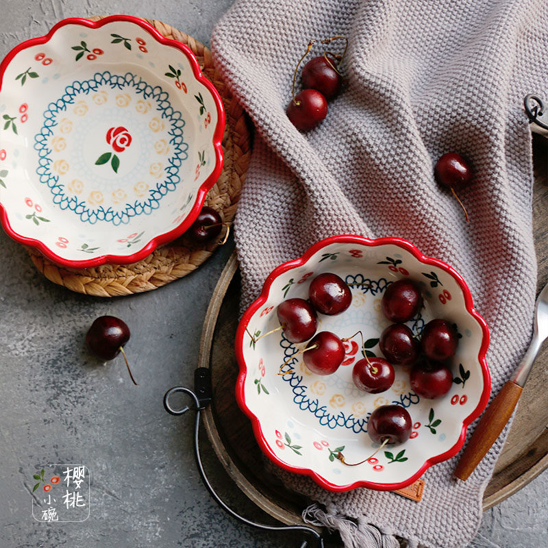Beautiful Cherry Bowl -- Hand-painted Lace Retro Ceramic Small Bowl Dessert Salad Bowl Cute Deputy Food Bowl Breakfast Bowl