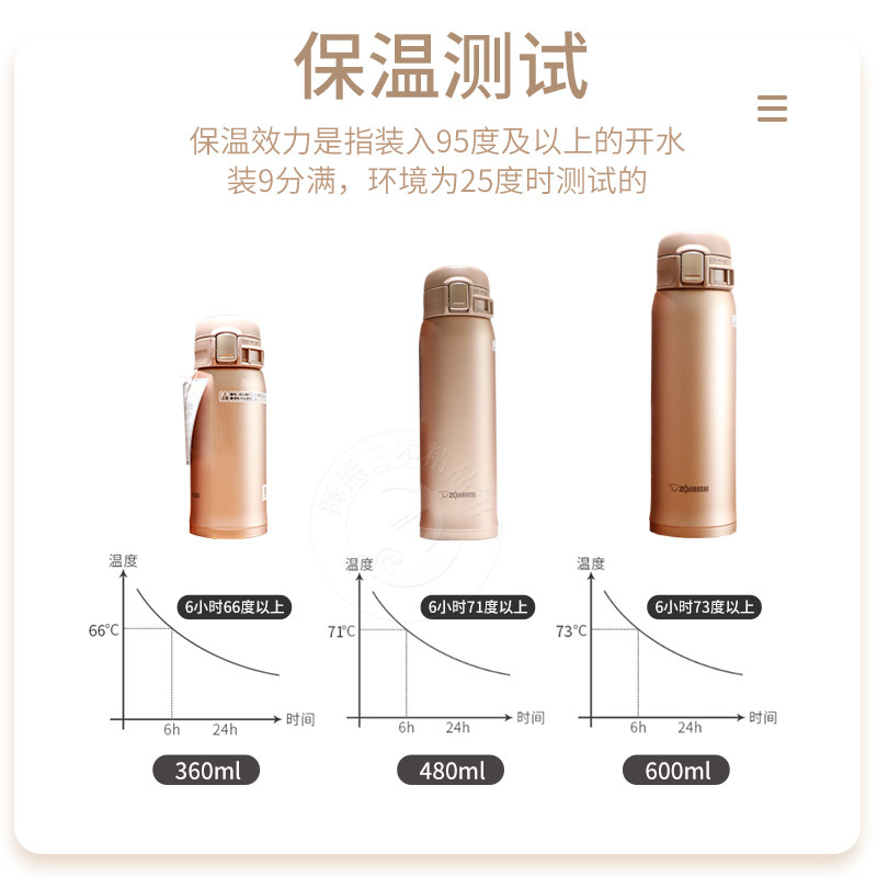Japan's Zojirushi light stainless steel heat preservation and cold car cup leak-proof spring cap bottle pot SM-SD36 48 60