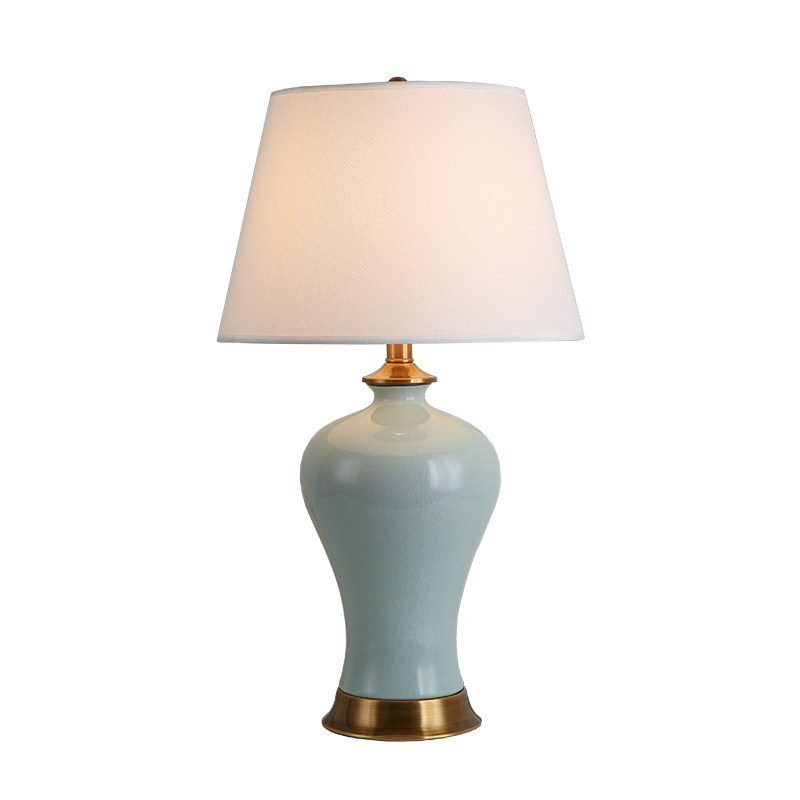 American retro ceramic table lamp copper color Chinese creative living room energy-saving lamps warm light desk lamp bedroom bedside lamp