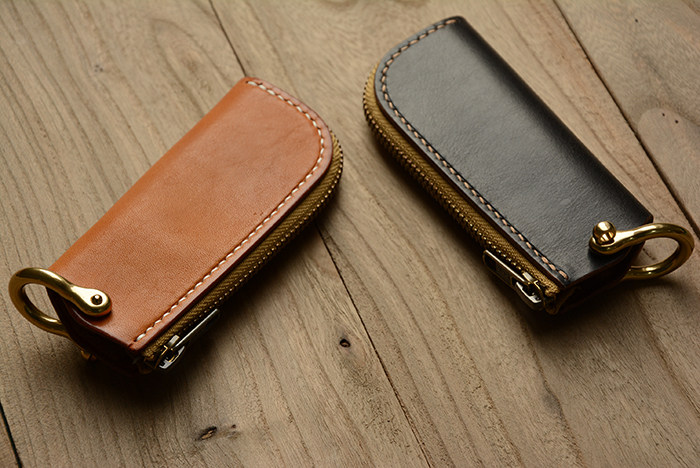 (Spot) Italy Horween handmade primary color vegetable tanned leather zipper key case