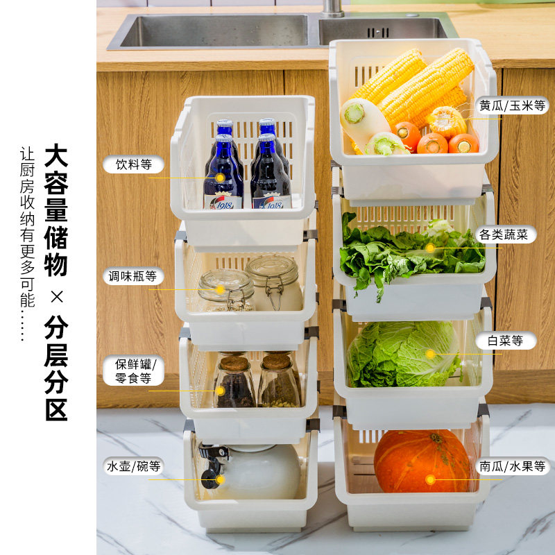 Kitchen shelf multi-layer overlay vegetable collection frame landing fruit basket to finish the basket household collection basket