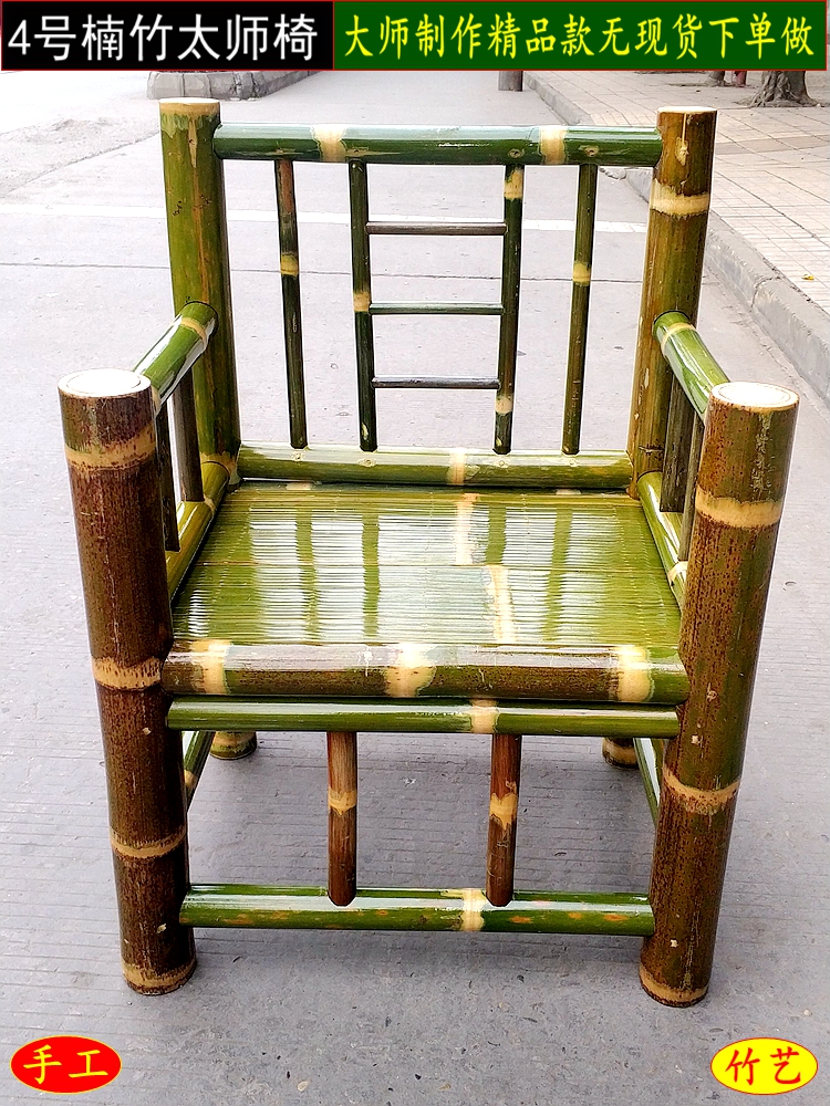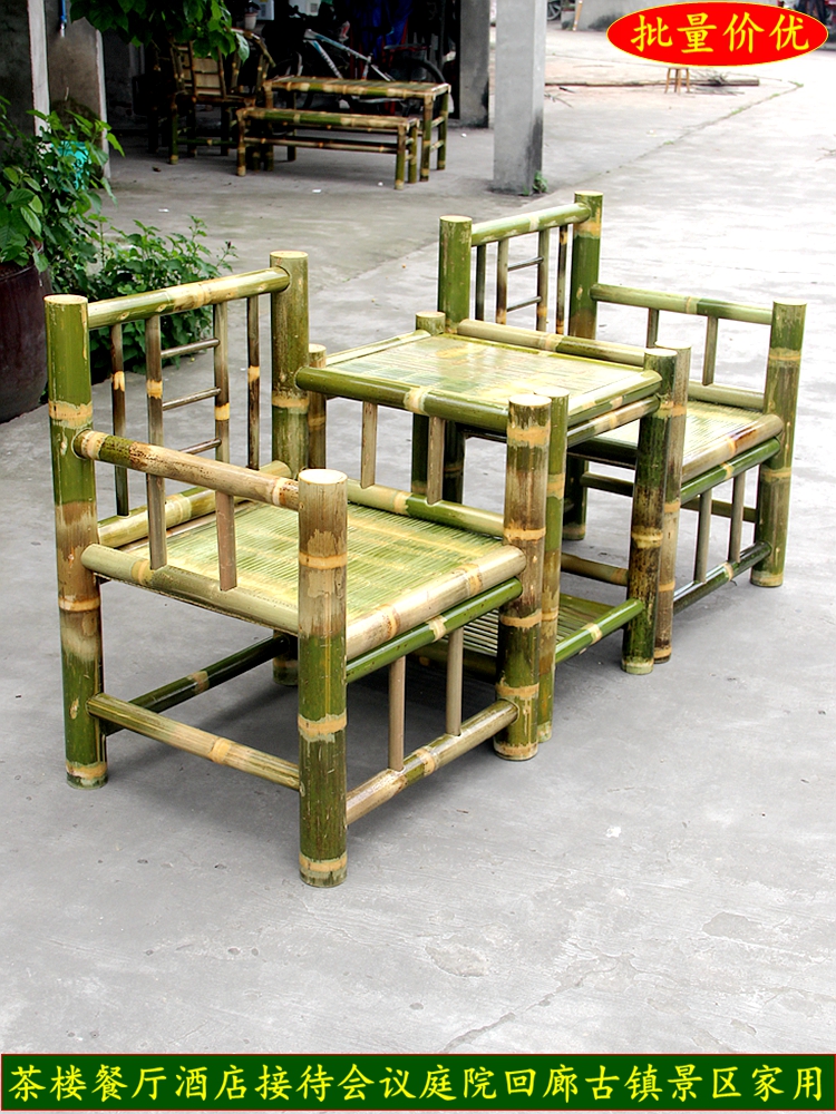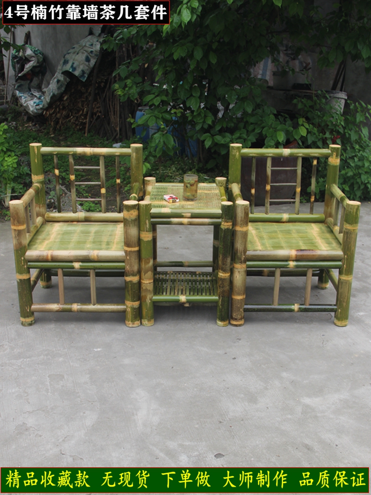 Folk custom old-fashioned back chair handmade Zen bamboo tea table quality luxury boss leisure bamboo chair home garden