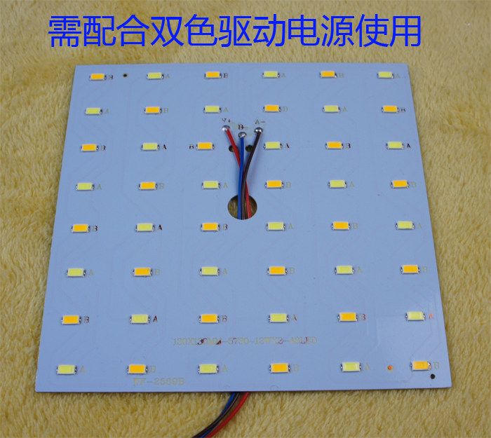 LED bicolor color patch light source square light plate walkway light dining chandelier light source accessories DIY light plate 12W
