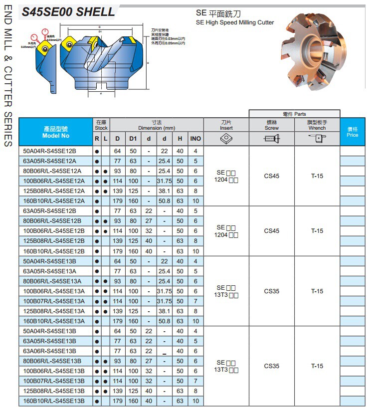 Yiyi Face Milling Cutterhead 50A04R 63A05R 80B06R 100B08R 125B08R-S45SE13A B