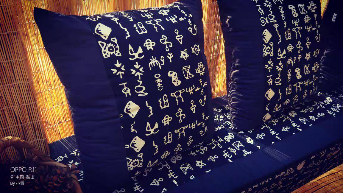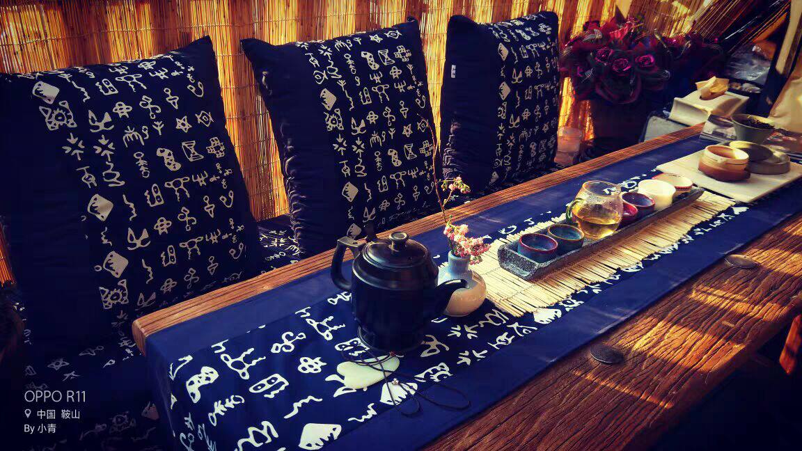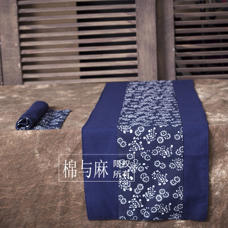 Teahouse custom blue printing stitching high-end thickened ethnic style pastoral table flag teahouse leisure farm table flag bed flag