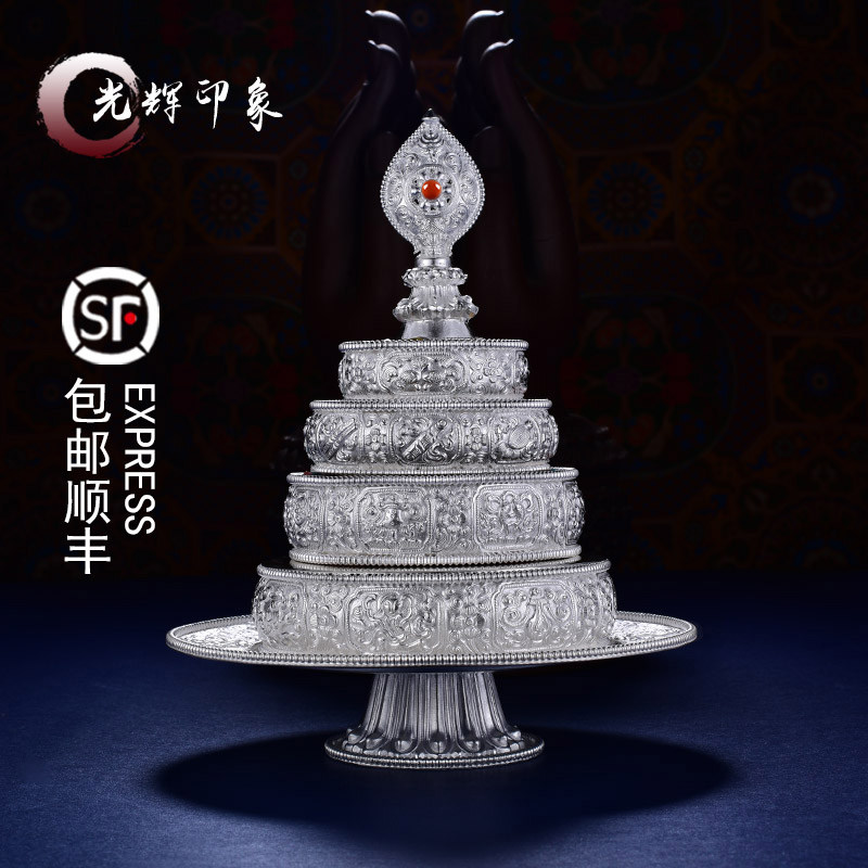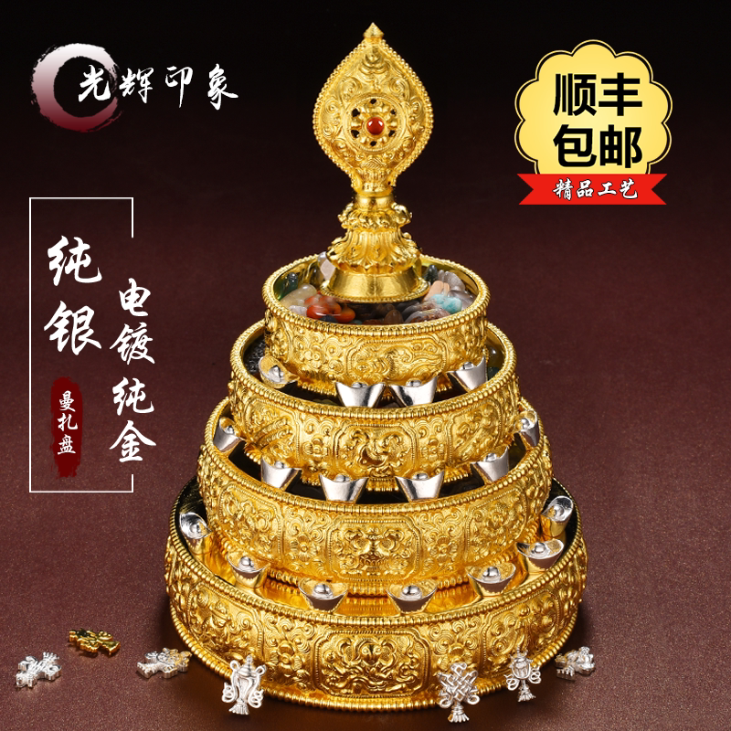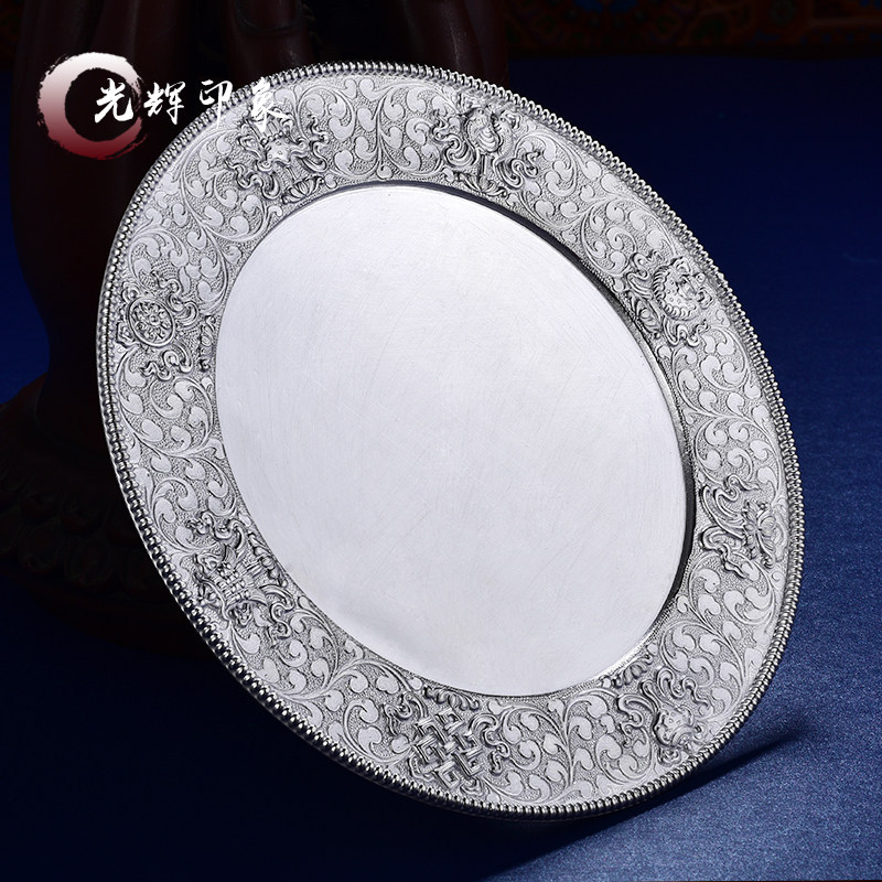 Tibetan S999 sterling silver Manza tray foot silver offering tray Manzaki tray carving eight auspicious Mancha Luo Tantric offerings