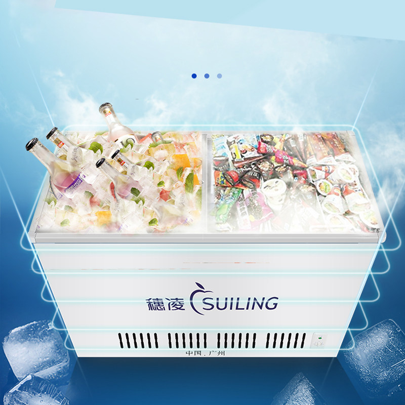 Ear Ling Small Freezer Commercial Horizontal Transparent Glass Door Display Cabinet Full-Rush Frozen Single Warm Refrigerated Frozen Ice-cream Fridge