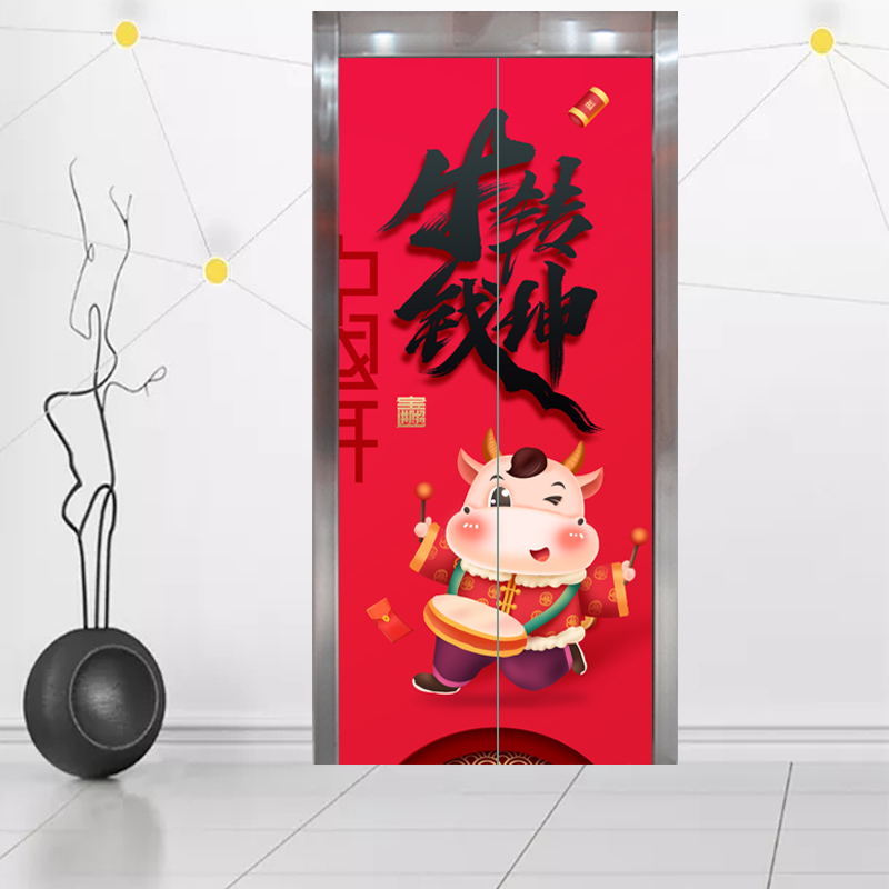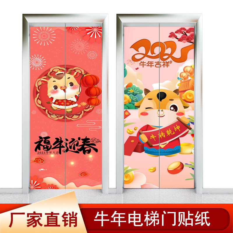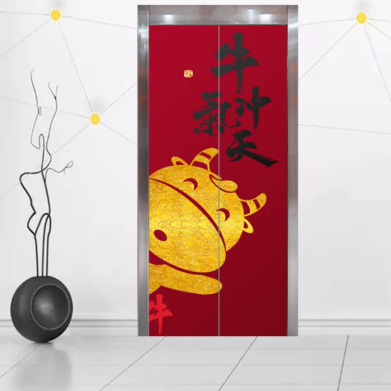 2021 Niu Year elevator sticker elevator door decoration door paste into the household light luxury creative anti-theft door self-sticking Chinese painting waterproof renovation creative cartoon transformation into the door festive