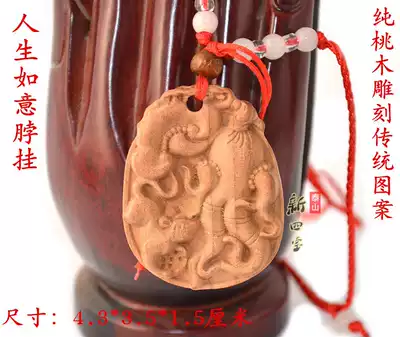 Authentic peach wood carving Mandarin duck wear carry neck pendant trick peach blossom necklace evil safety pendant jewelry