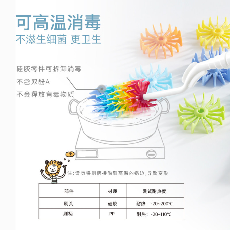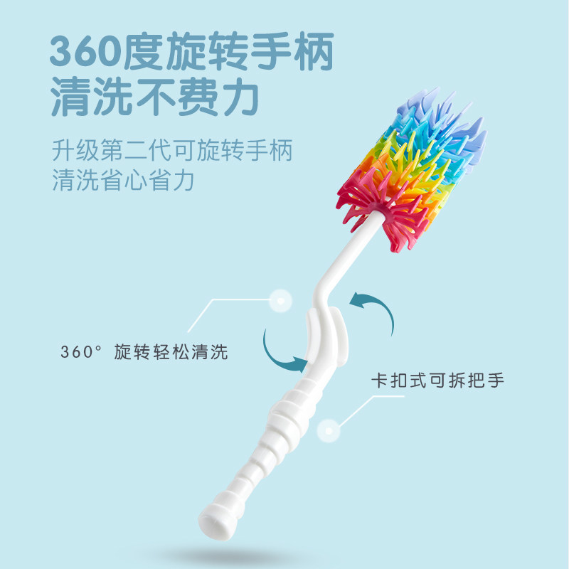 Silicone bottle brush Rainbow cleaning brush 360 rotary cleaning brush brush bottle water cup brush baby set