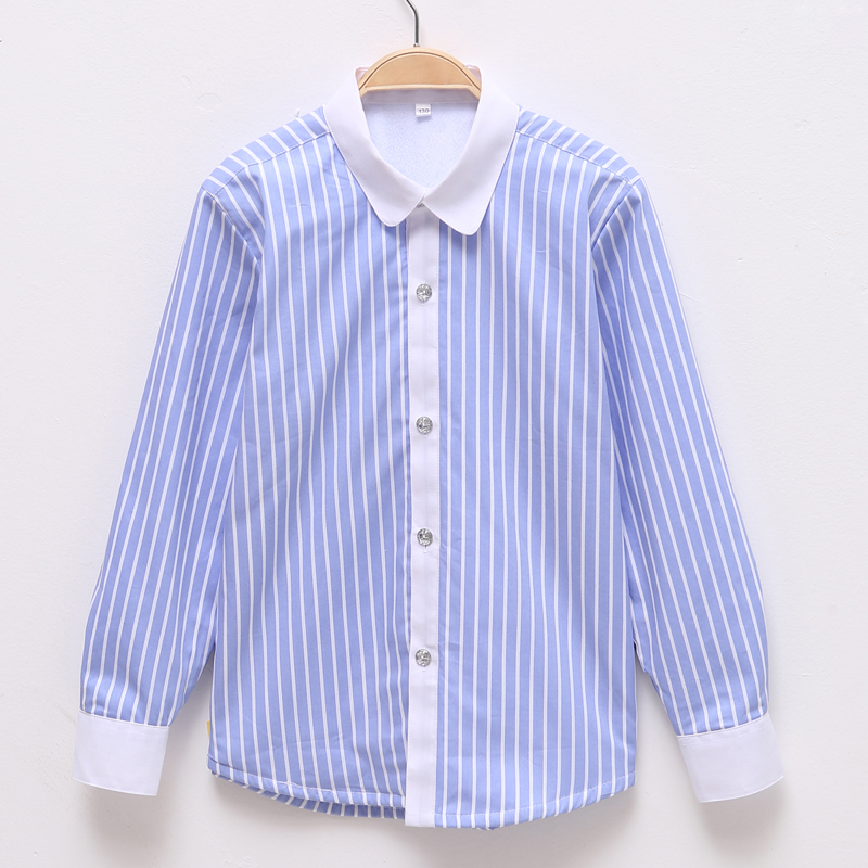 Autumn and winter new long-sleeved boys and girls plus velvet padded white shirt children's performance children's clothing children's shirt