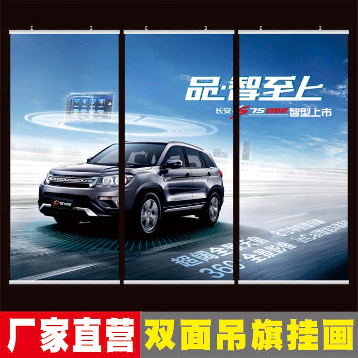 Mall hanging mantle custom 4S shop PET clip black double spray cloth large hanging flag double-sided UV poster hanging painting advertising flag