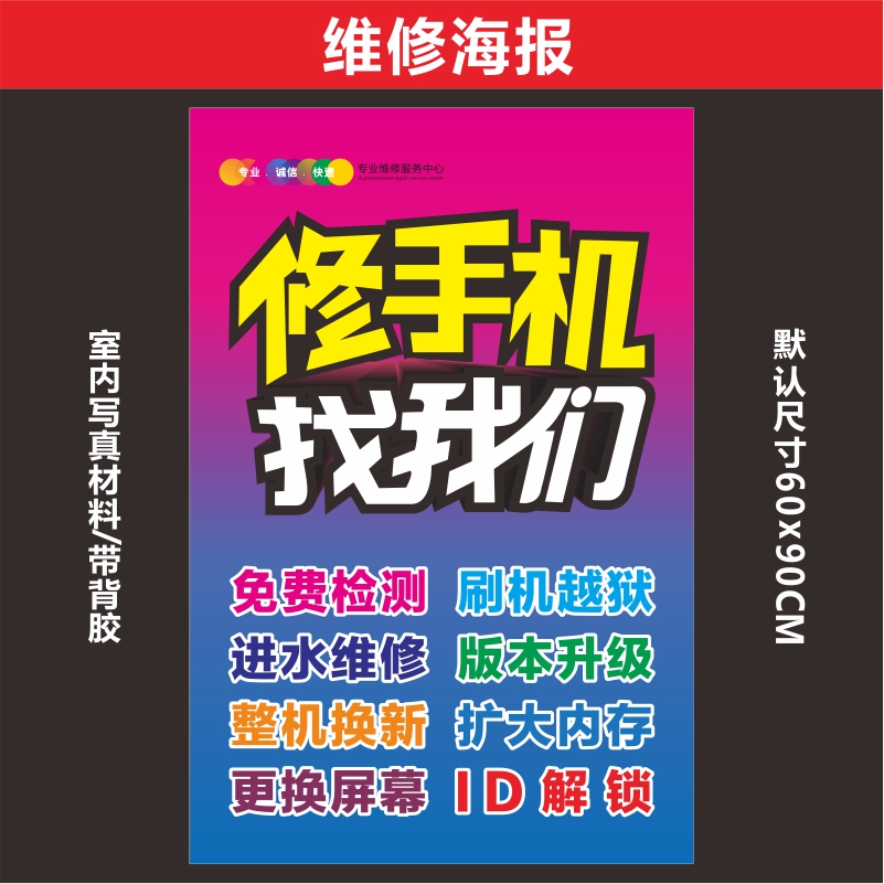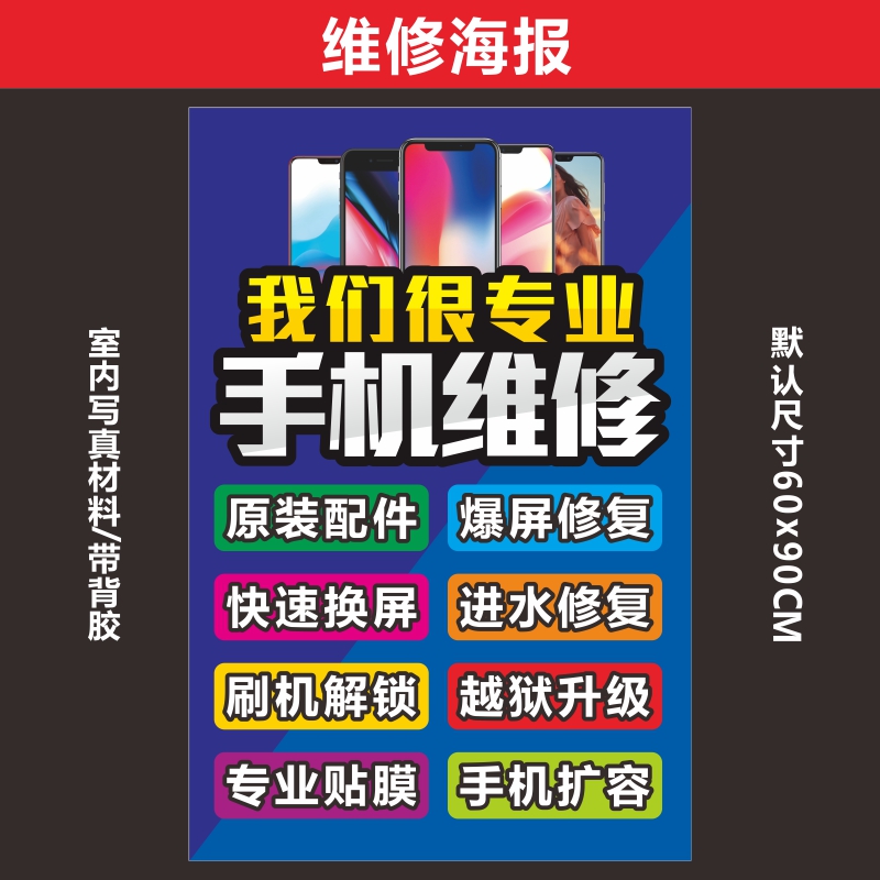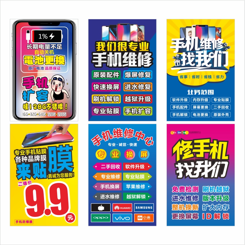 Mobile Phone Repair Recommended Advertising Picture Poster Cabinet Sticker Storefront Decorative items Write true back glue bodywork sticker speed print