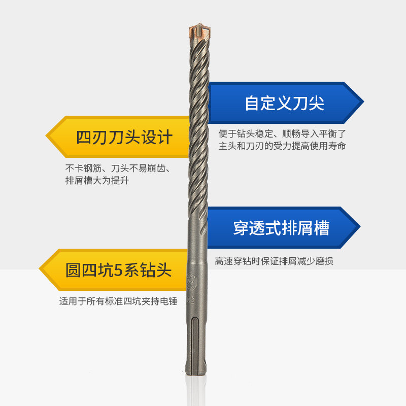 Bosch Four Pit Electric Hammer 5 Series Four-Edge Drill Bit Two Pit Two Groove Round Handle Impact Drill Bits Can Drill Reinforced Wall Concrete