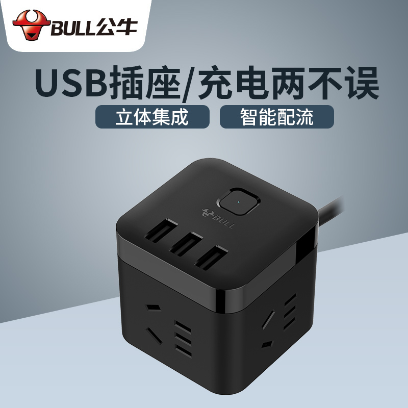 Bull Socket Usb Black Charging Magic Square Insert Extension Wire Patch Board Multifunction Home Power Converter