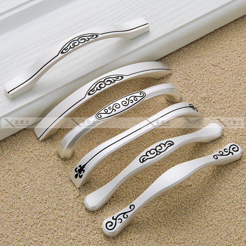 Classic American zinc alloy gold and silver sketching black lettering wardrobe door pull handle modern minimalist European-style furniture drawer handle